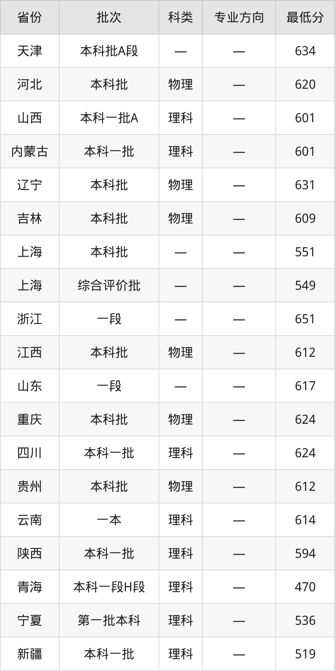 山西:理科最低601分
