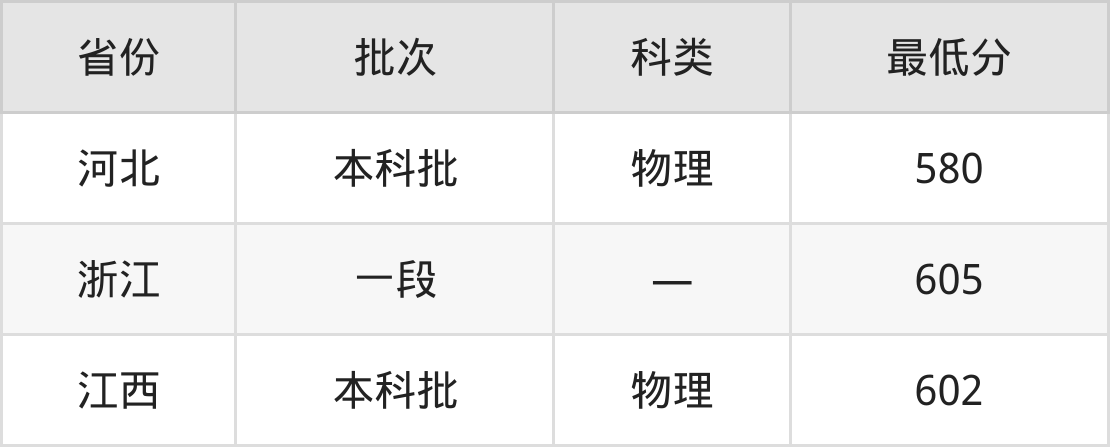 南方医科大学生物信息学专业在全国各省录取分数线: