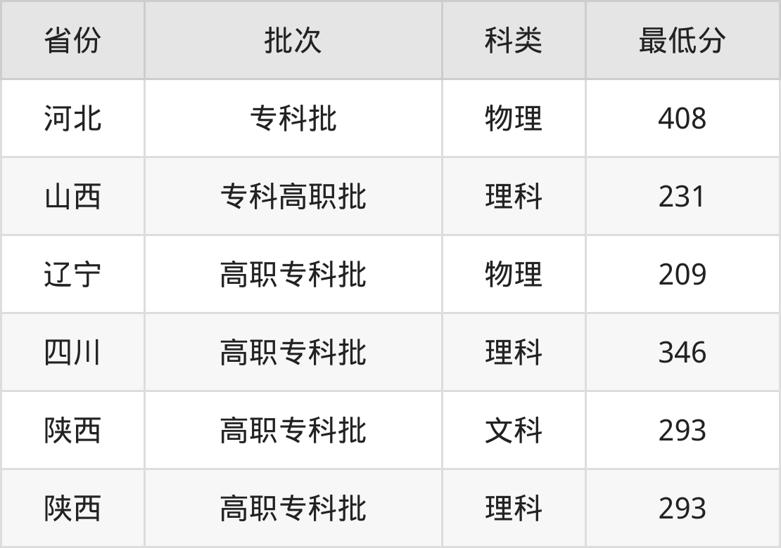 沈阳工学院机电一体化技术专业录取分数线从209分到408分不等,最低分数线如下: