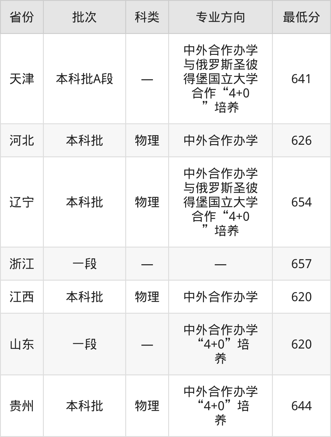 哈尔滨工业大学数学与应用数学专业录取分数线从620分到657分不等,最低分数线如下: