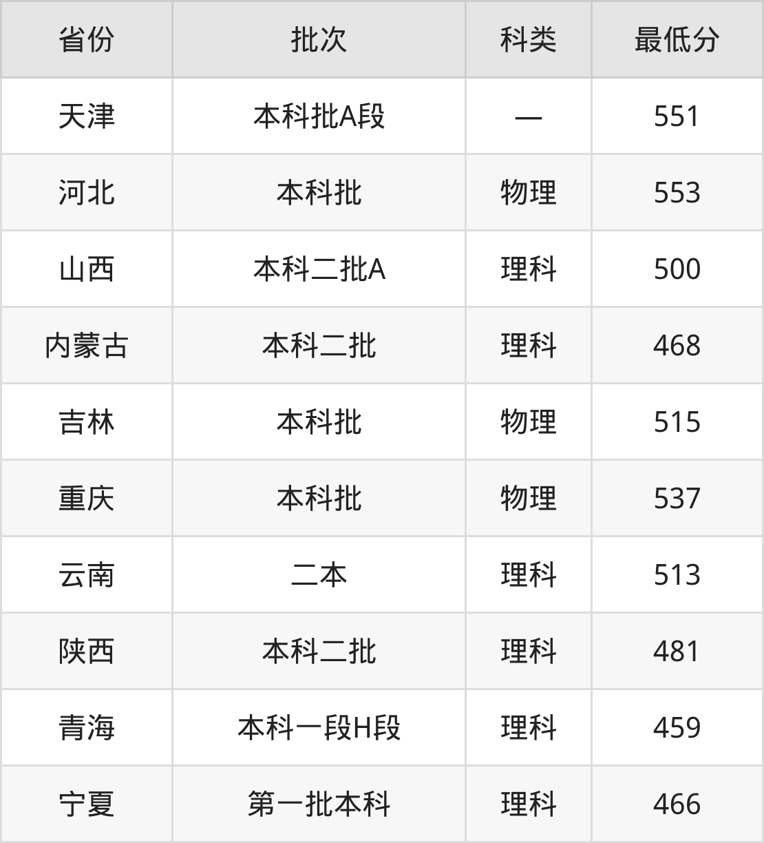 西北师范大学统计学专业录取分数线从459分到553分不等,最低分数线如下: