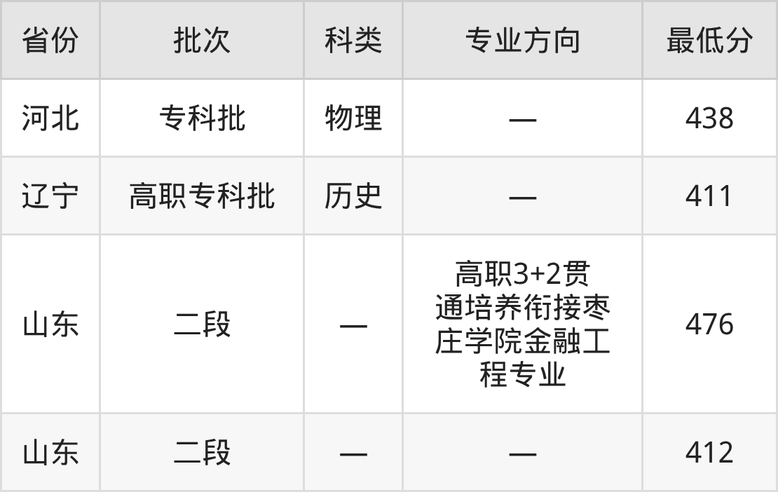 山东外贸职业学院金融服务与管理专业在全国各省录取分数线: