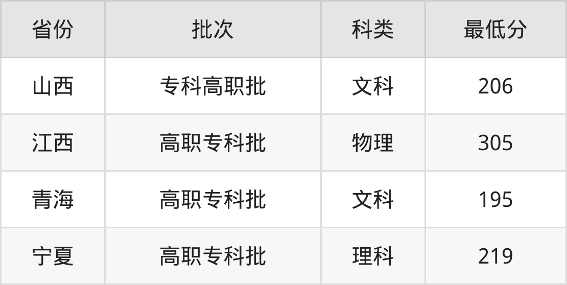 惠州经济职业技术学院新能源汽车技术专业录取分数线从195分到305分不等,最低分数线如下: