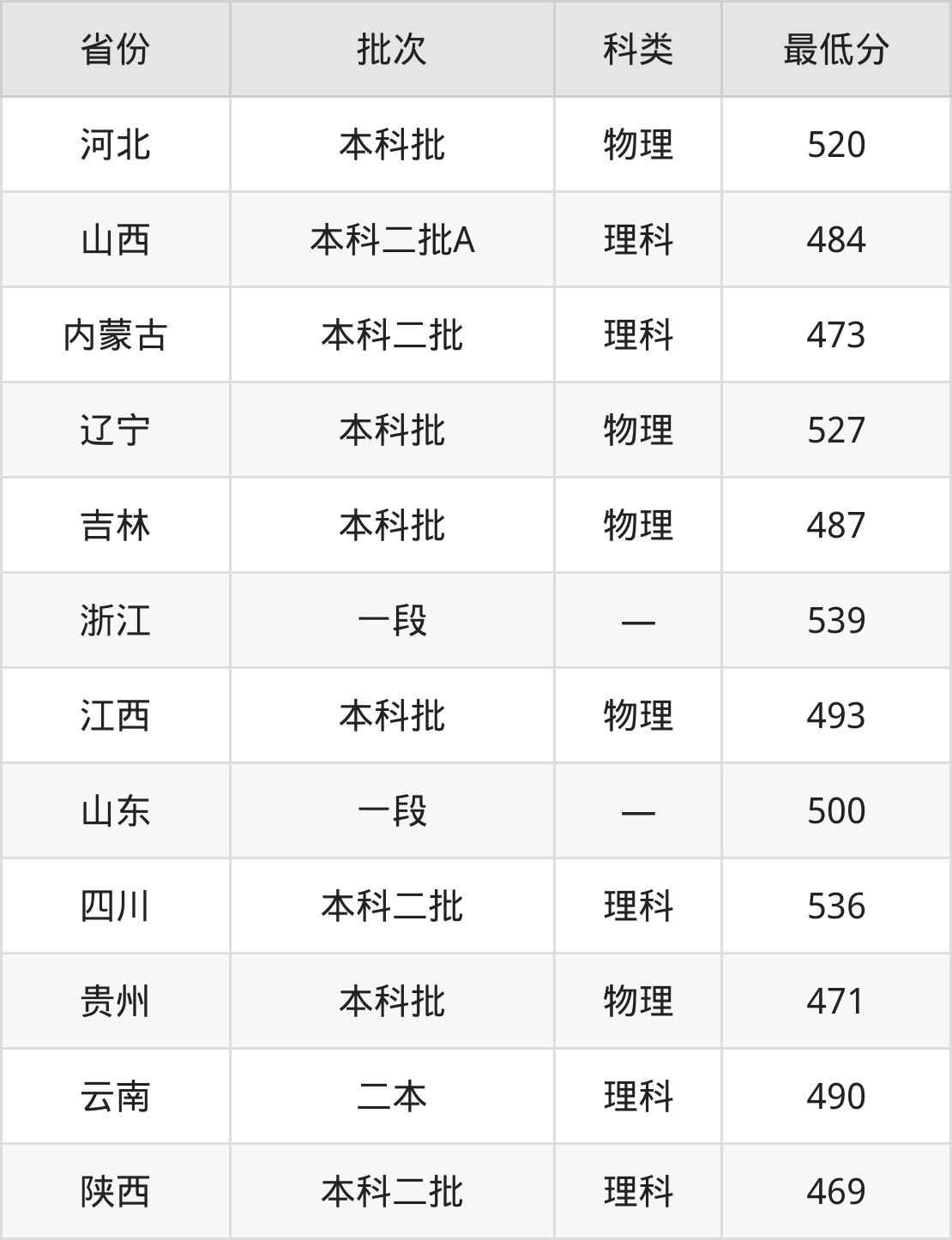 黑龙江八一农垦大学动物医学专业录取分数线从469分到539分不等,在部分地区的最低分数线如下: