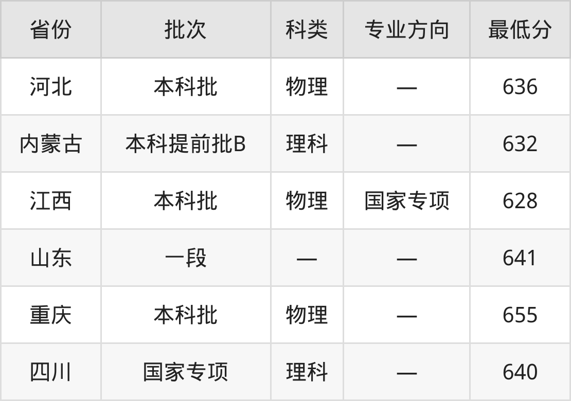 中山大学航空航天类专业录取分数线从628分到655分不等,最低分数线如下: