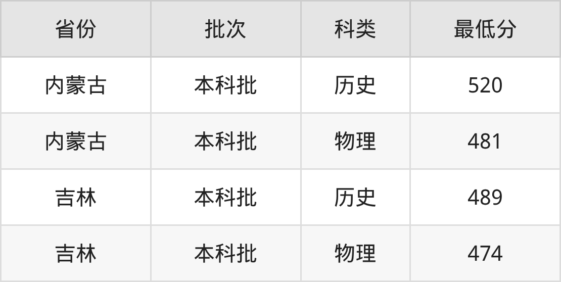 湖南工业大学少数民族预科专业在全国各省最低录取分数线为474分(吉林物理类),除此之外,在其余地区的最低分为内蒙古物理类481分,以上数据均为2025年数据,供2026年高考生参考。