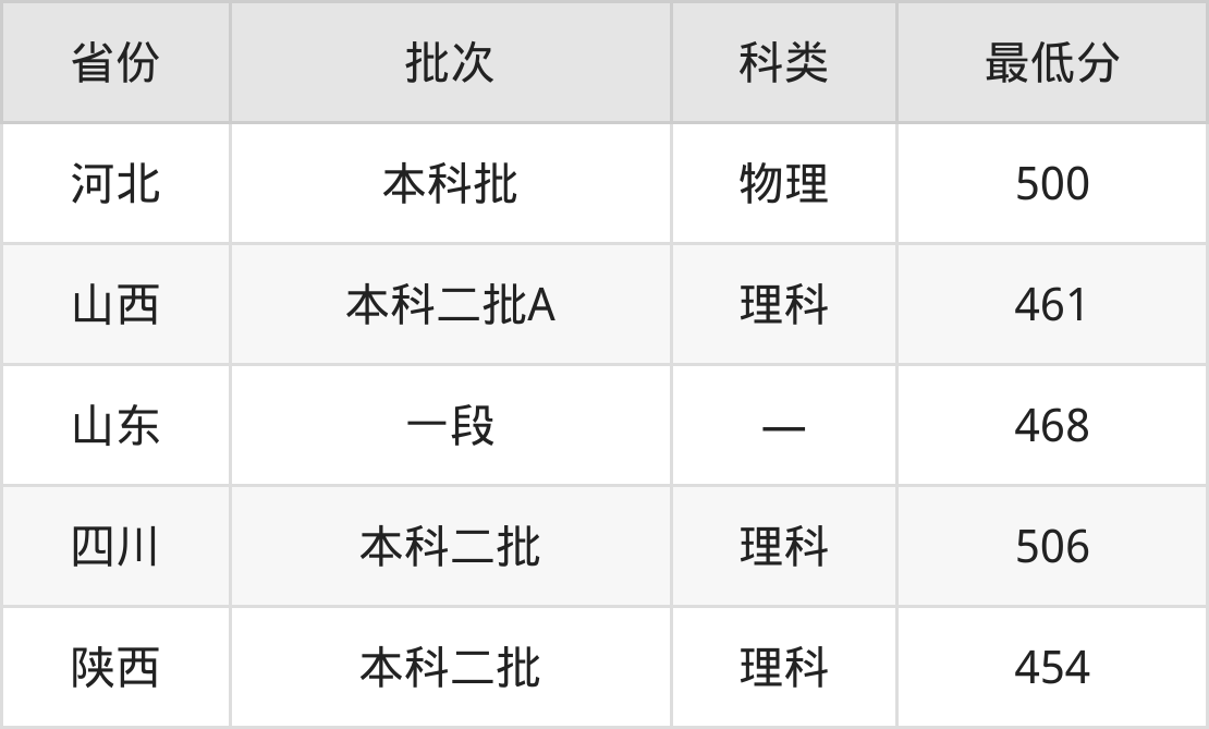 山西能源学院能源与环境系统工程专业在全国各省最低录取分数线为454分(陕西理科),除此之外,在其余地区的最低分为山东468分、四川理科506分、河北物理类500分、山西理科461分,以上数据均为2024年数据,供2025年高考生参考。