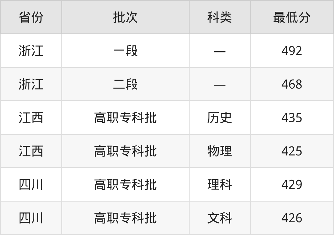 义乌工商职业技术学院电子商务专业录取分数线从425分到492分不等,最低分数线如下: