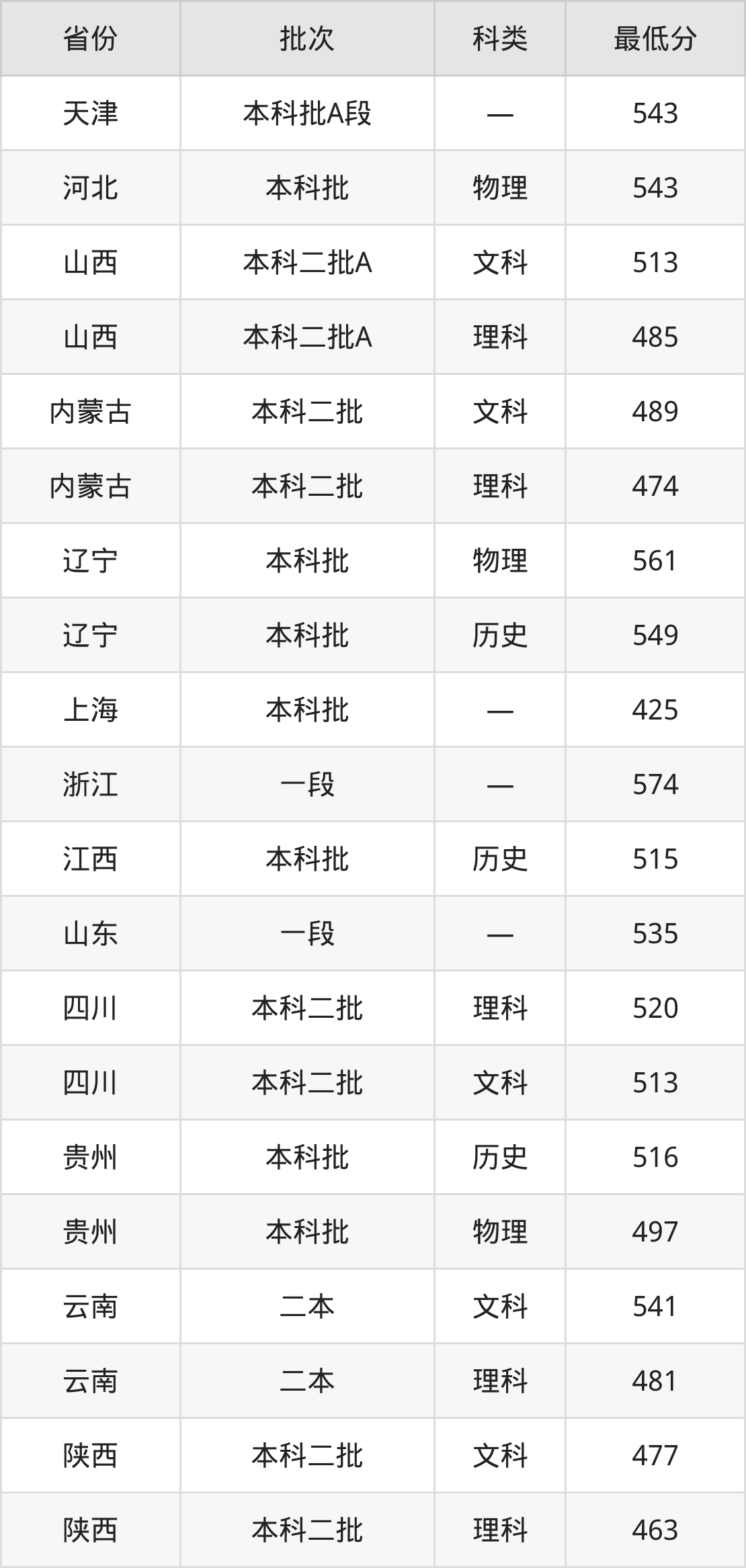 哈尔滨金融学院会计学专业录取分数线从417分到574分不等,在部分地区的最低分数线如下: