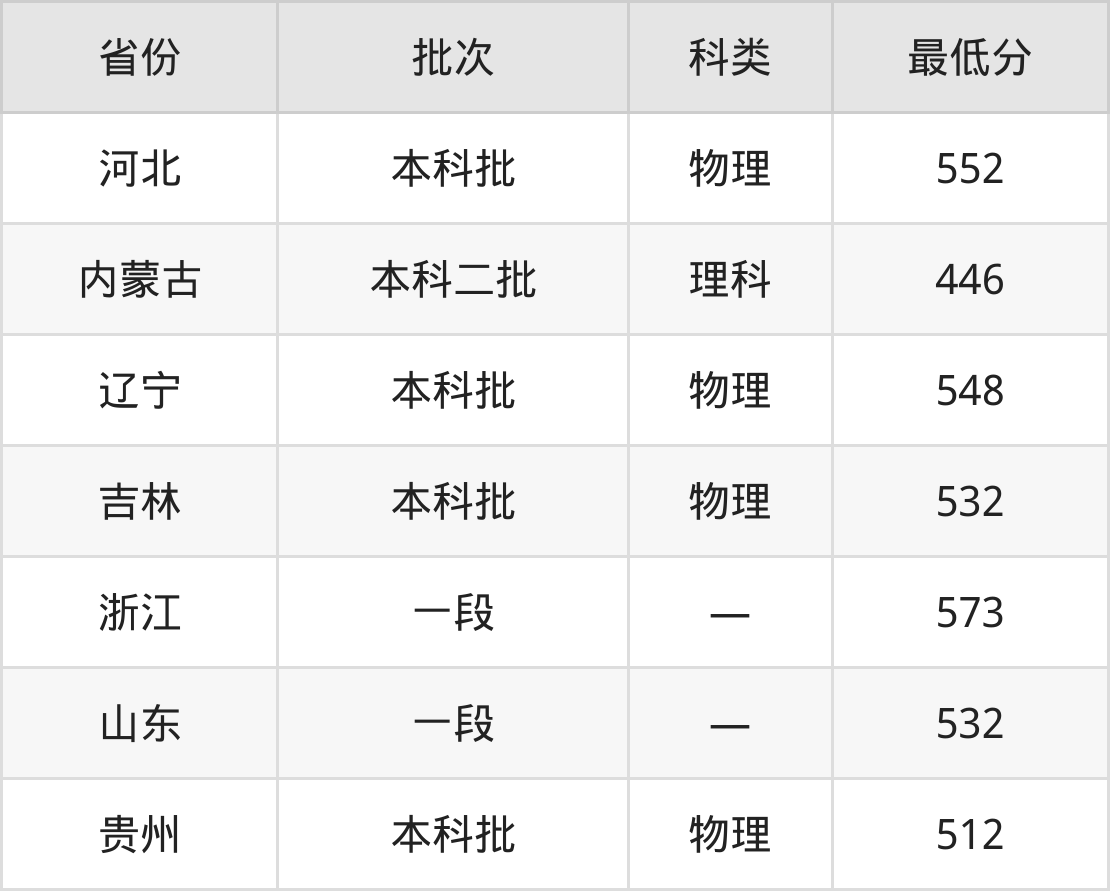 安徽农业大学车辆工程专业在全国各省最低录取分数线为446分(内蒙古理科),除此之外,在其余地区的最低分为浙江573分、山东532分、贵州物理类512分、河北物理类552分等,以上数据均为2024年数据,供2025年高考生参考。