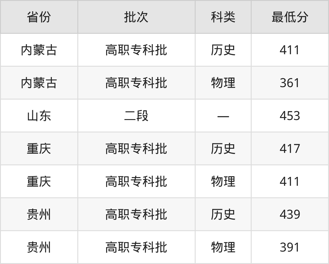 重庆水利电力职业技术学院电力系统继电保护技术专业在全国各省最低录取分数线为361分(内蒙古物理类),除此之外,在其余地区的最低分为山东453分、重庆物理类411分、贵州物理类391分,以上数据均为2025年数据,供2026年高考生参考。