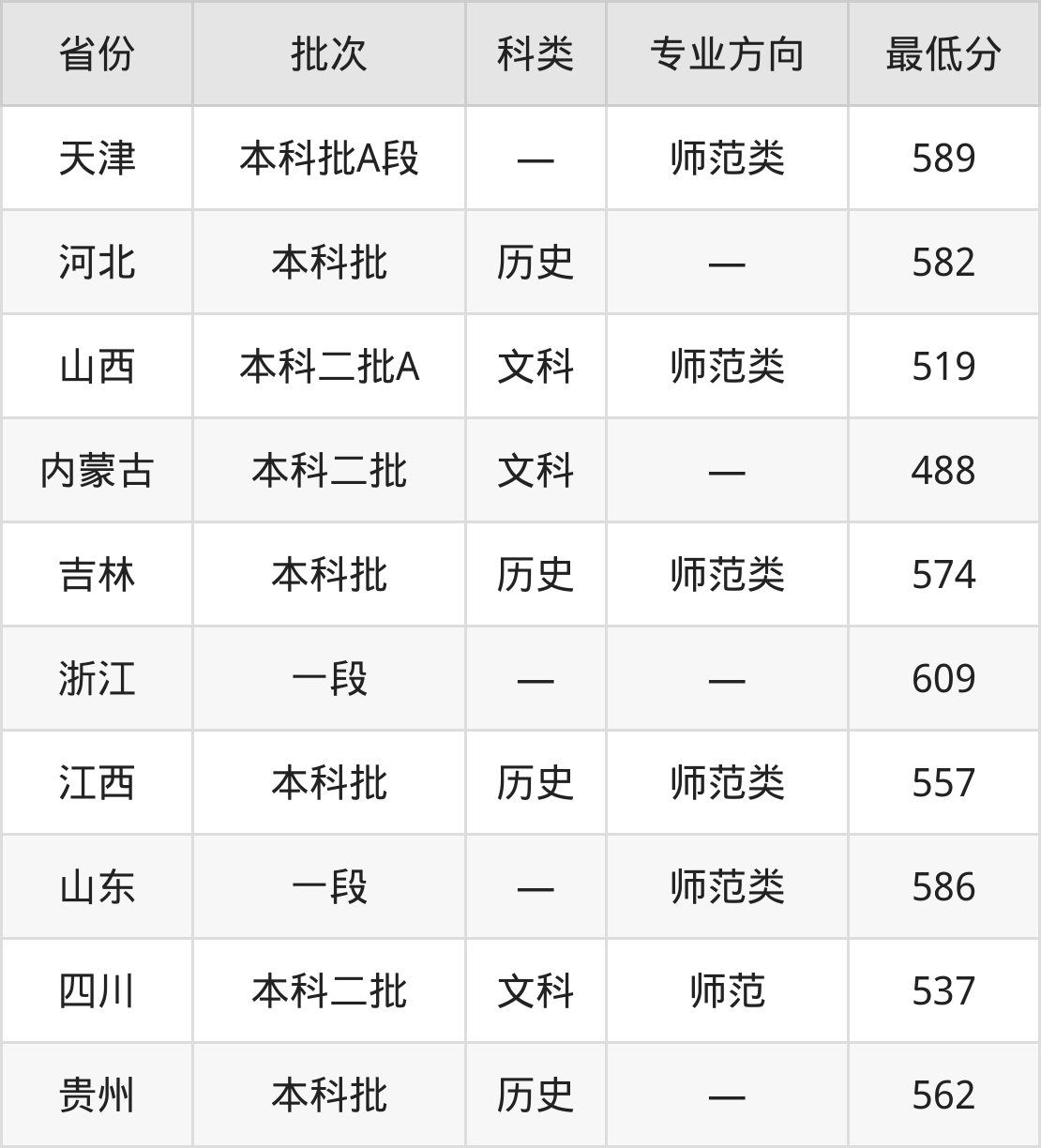湖北师范大学汉语言文学专业在全国各省录取分数线: