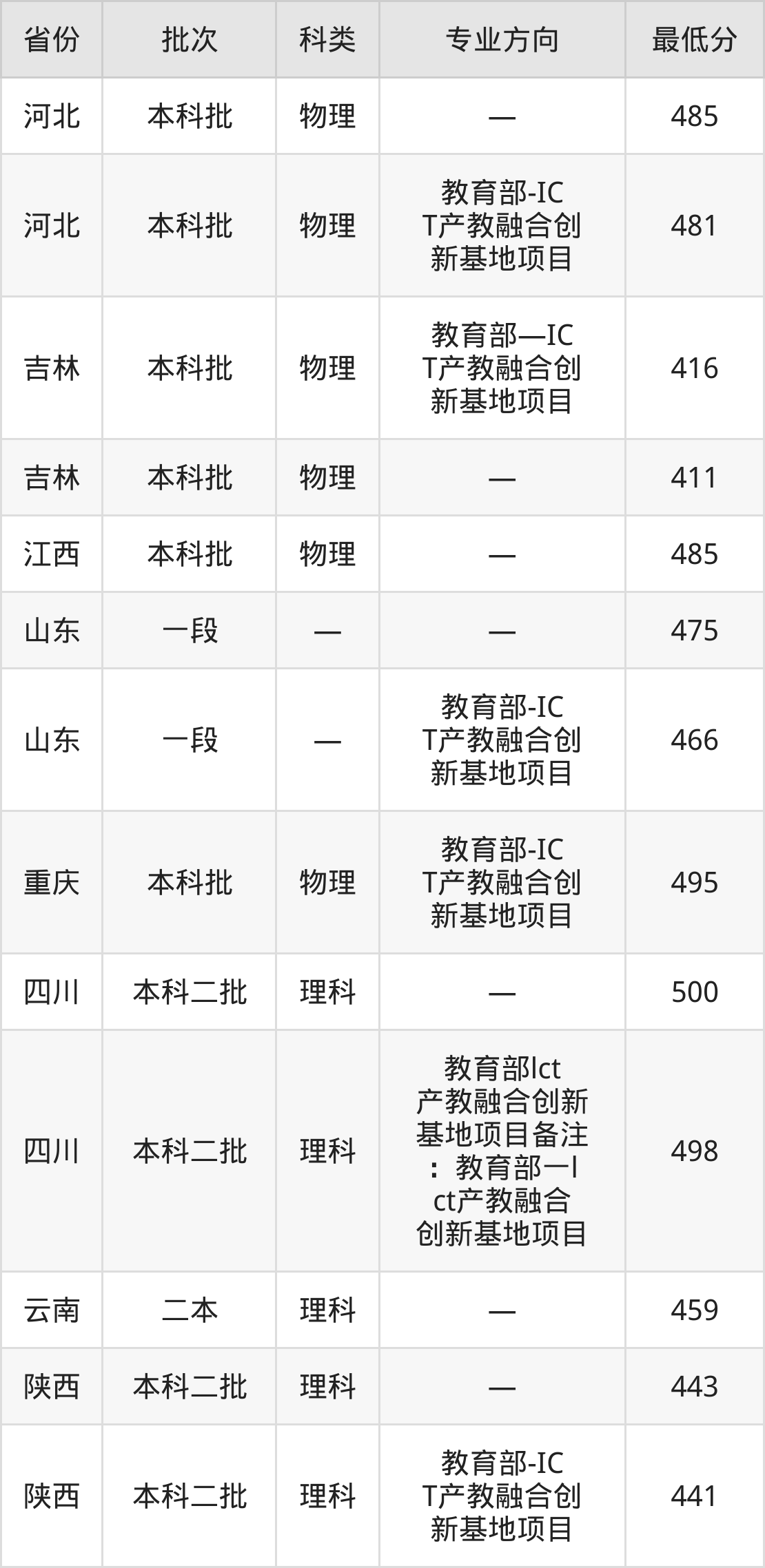 计算机科学与技术3500元/年、计算机科学与技术(ICT产教融合创新基地项目)8500元/年。