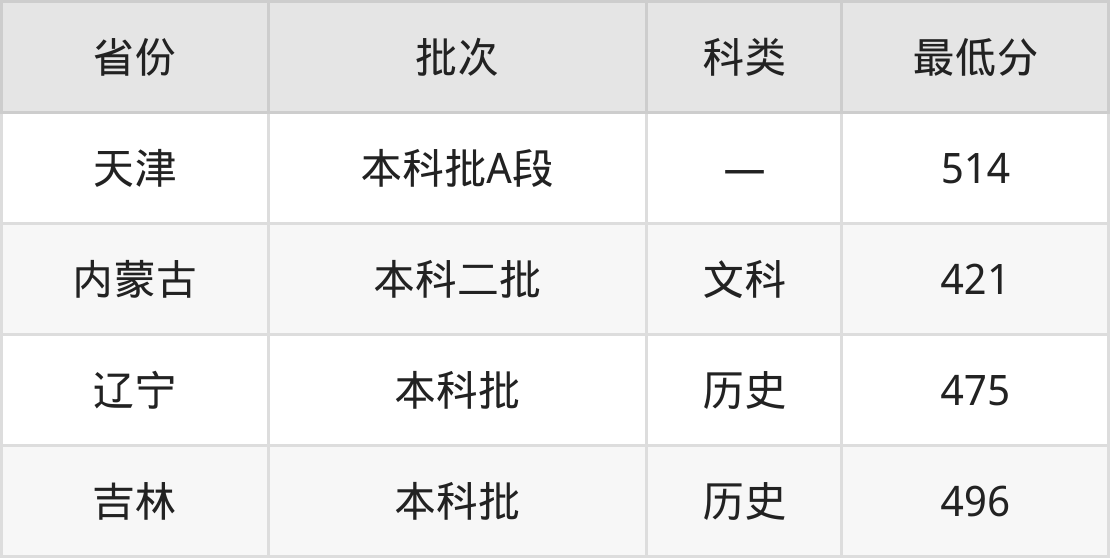 牡丹江师范学院俄语专业录取分数线从421分到514分不等,最低分数线如下: