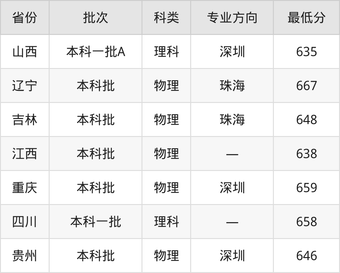 中山大学微电子科学与工程专业录取分数线从635分到667分不等,最低分数线如下: