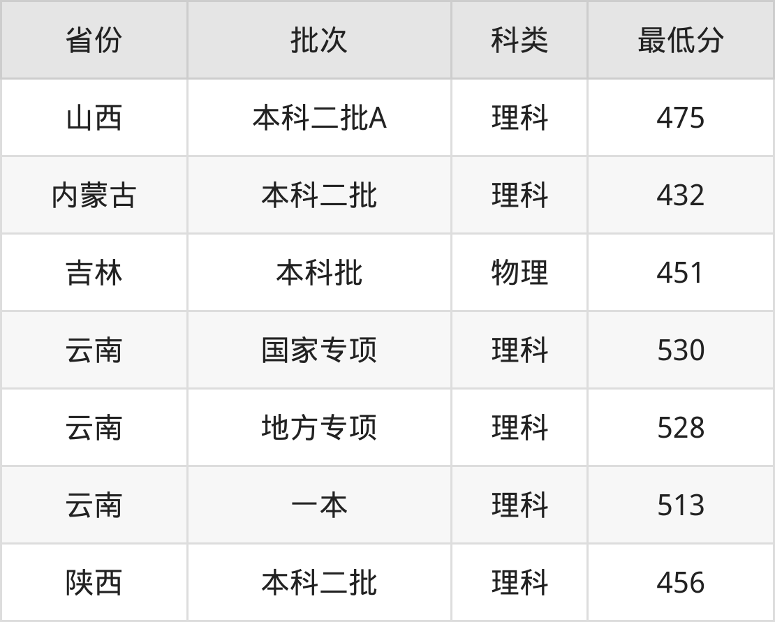 云南农业大学土地资源管理专业在全国各省最低录取分数线为432分(内蒙古理科),除此之外,在其余地区的最低分为陕西理科456分、山西理科475分、吉林物理类451分、云南理科513分,以上数据均为2024年数据,供2025年高考生参考。