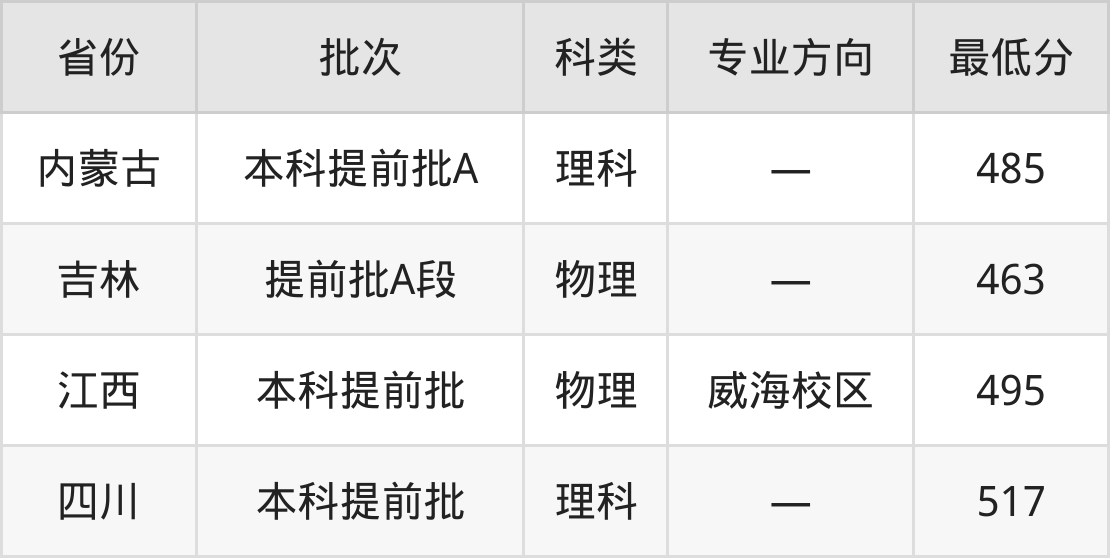 山东交通学院轮机工程专业录取分数线从463分到517分不等,最低分数线如下: