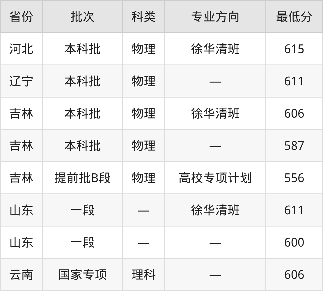 吉林大学动物医学专业录取分数线从556分到615分不等,最低分数线如下: