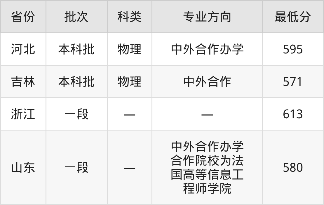 | 物理类 | 501组(中 外合作) | 中外合作办学 合作院校为法 国高等信息工 程师学院 | 27 |