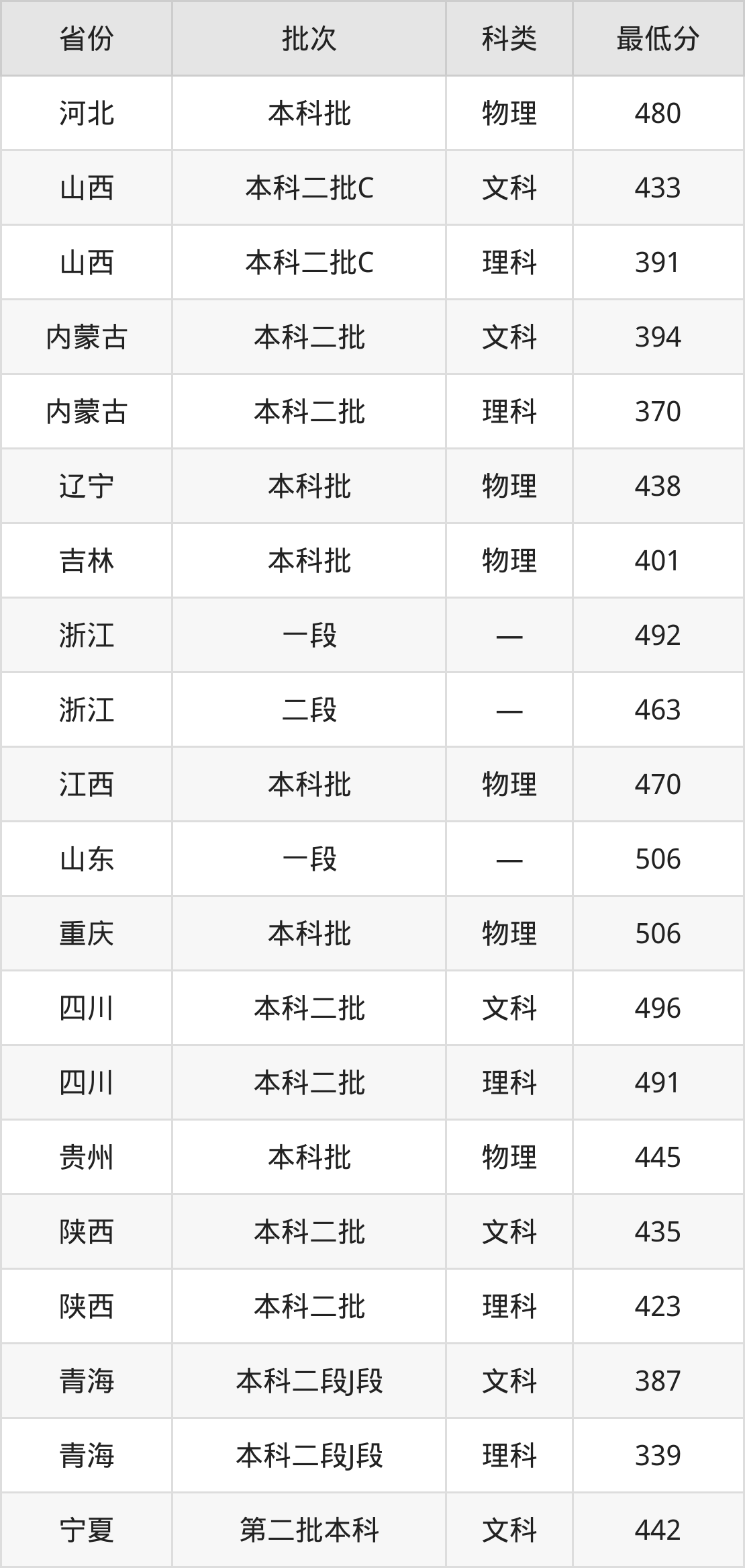 浙江:最低463分
