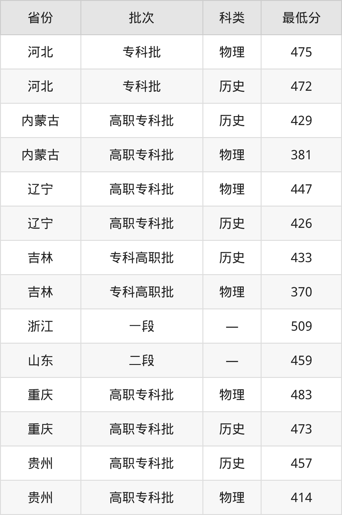 江西电力职业技术学院发电厂及电力系统专业在全国各省最低录取分数线为370分(吉林物理类),除此之外,在其余地区的最低分为浙江509分、山东459分、重庆历史类473分、河北历史类472分等,以上数据均为2025年数据,供2026年高考生参考。