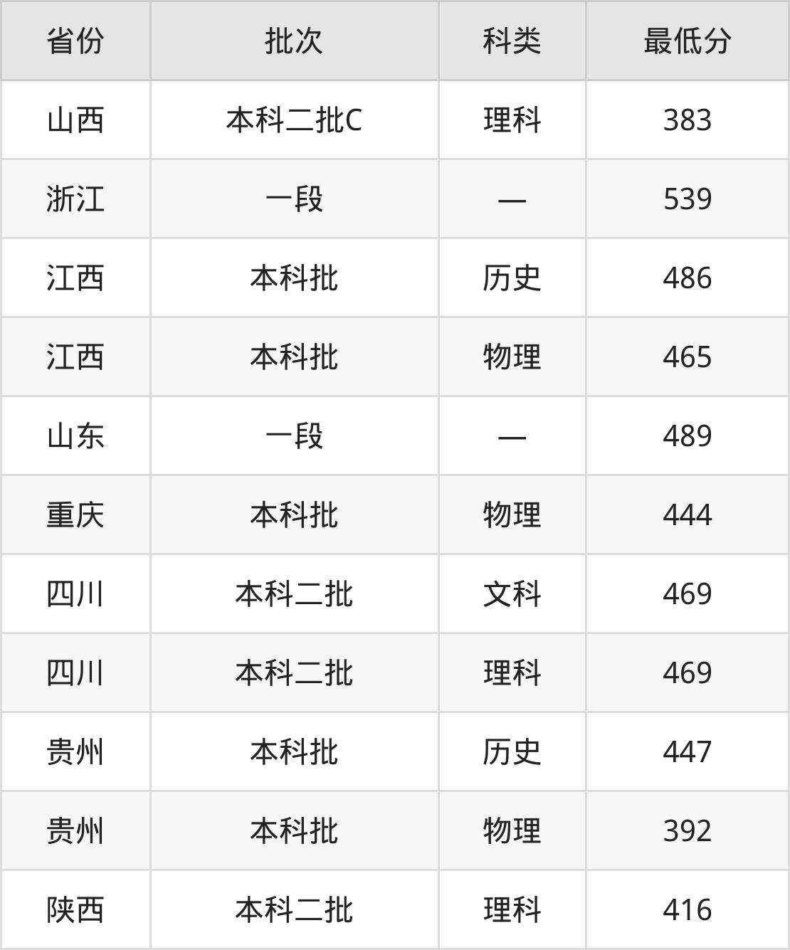 山西:理科最低383分