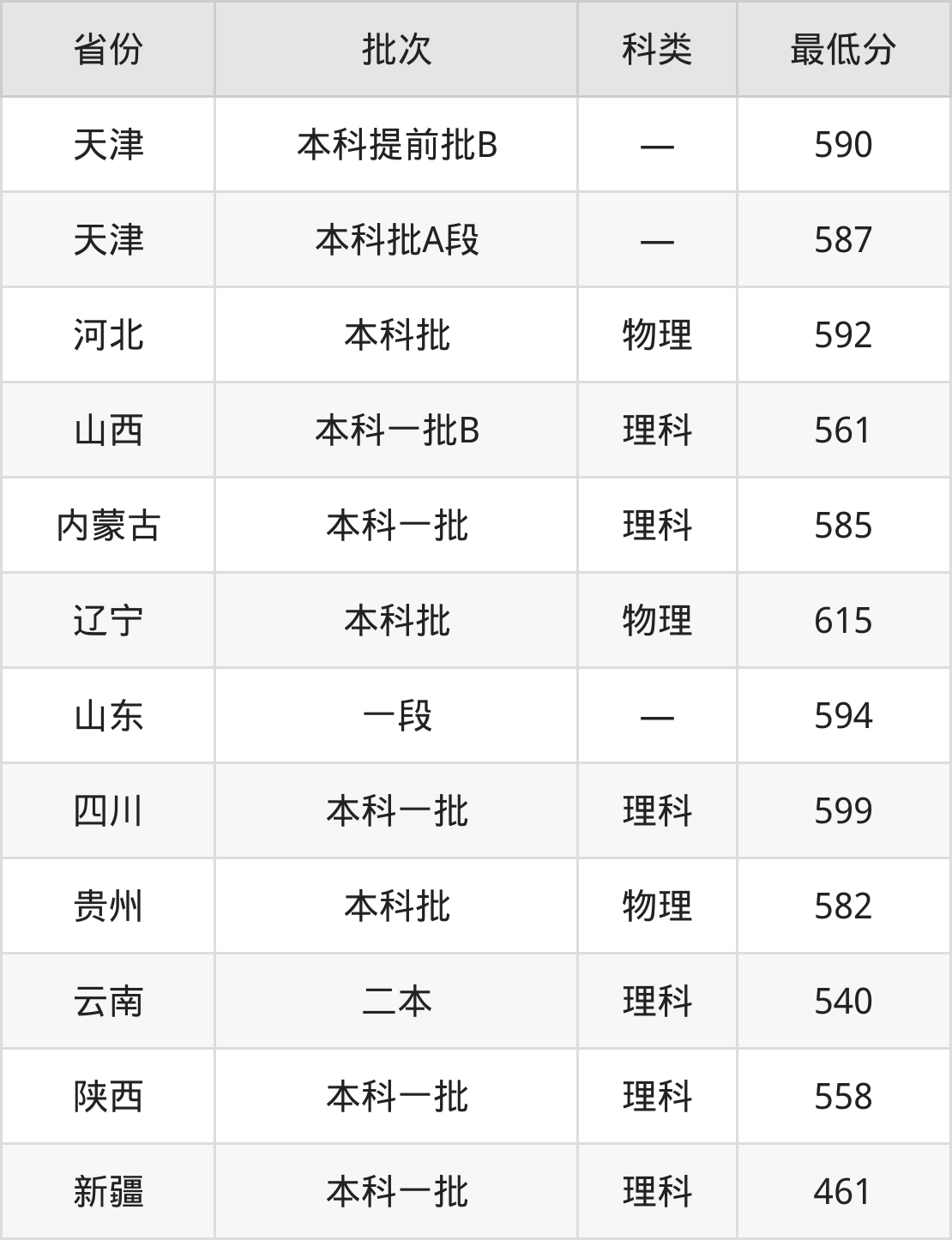 天津理工大学电气工程及其自动化专业录取分数线从461分到615分不等,在部分地区的最低分数线如下: