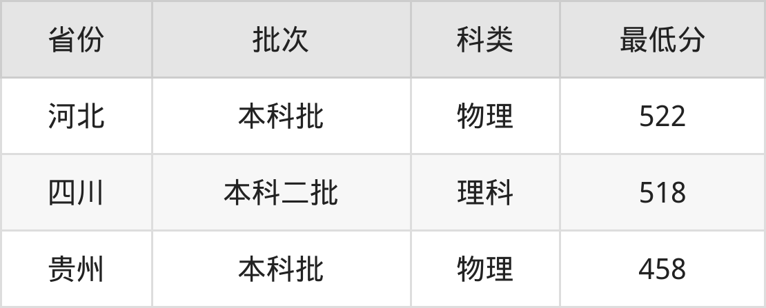 徐州工程学院食品质量与安全专业在全国各省最低录取分数线为458分(贵州物理类),除此之外,在其余地区的最低分为河北物理类522分、四川理科518分,以上数据均为2024年数据,供2025年高考生参考。