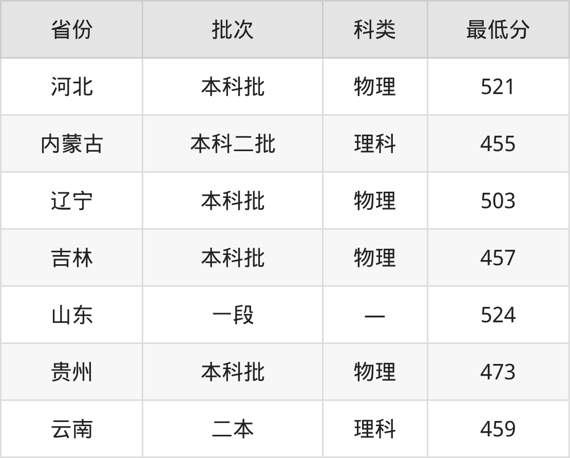 大连民族大学生物技术专业录取分数线从455分到524分不等,最低分数线如下: