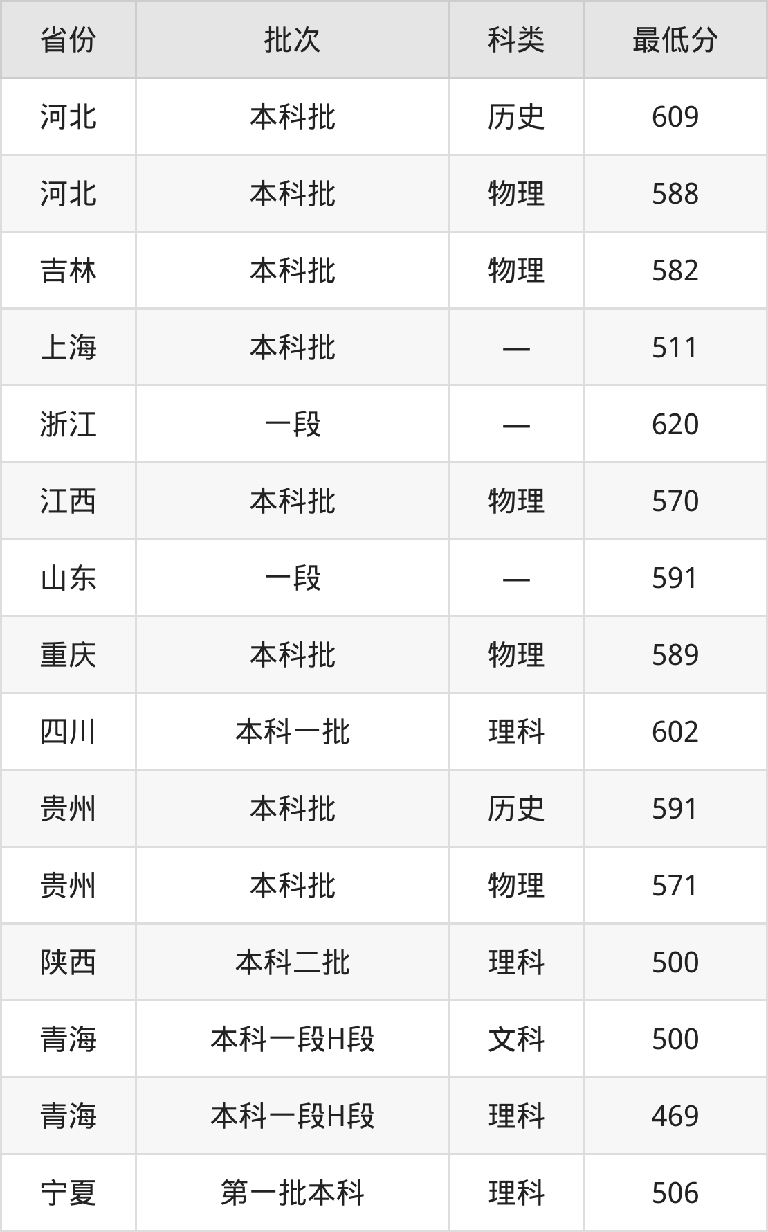 浙江财经大学审计学专业录取分数线从469分到620分不等,在部分地区的最低分数线如下: