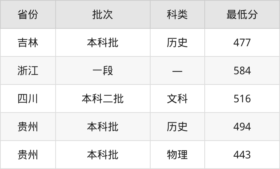 江苏理工学院跨境电子商务专业在全国各省最低录取分数线为443分(贵州物理类),除此之外,在其余地区的最低分为吉林历史类477分、浙江584分、四川文科516分,以上数据均为2024年数据,供2025年高考生参考。