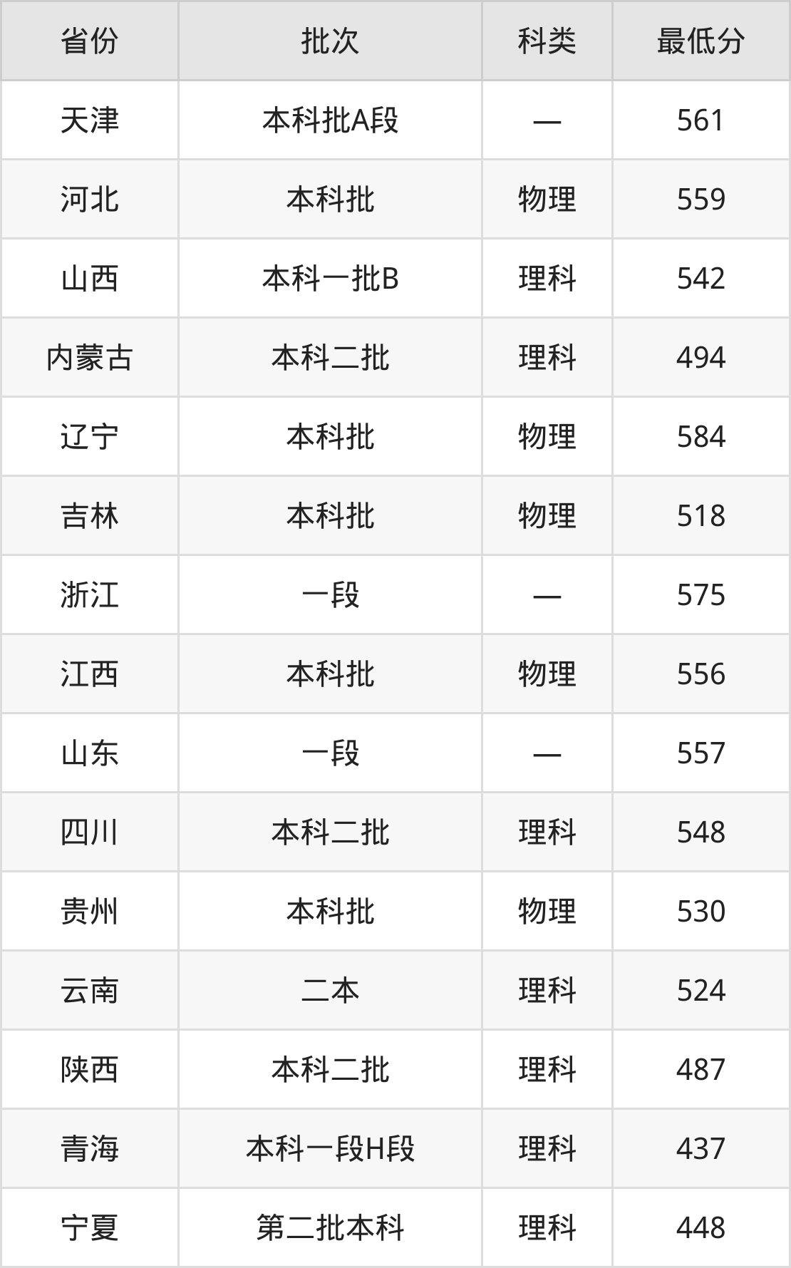 内蒙古:理科最低494分