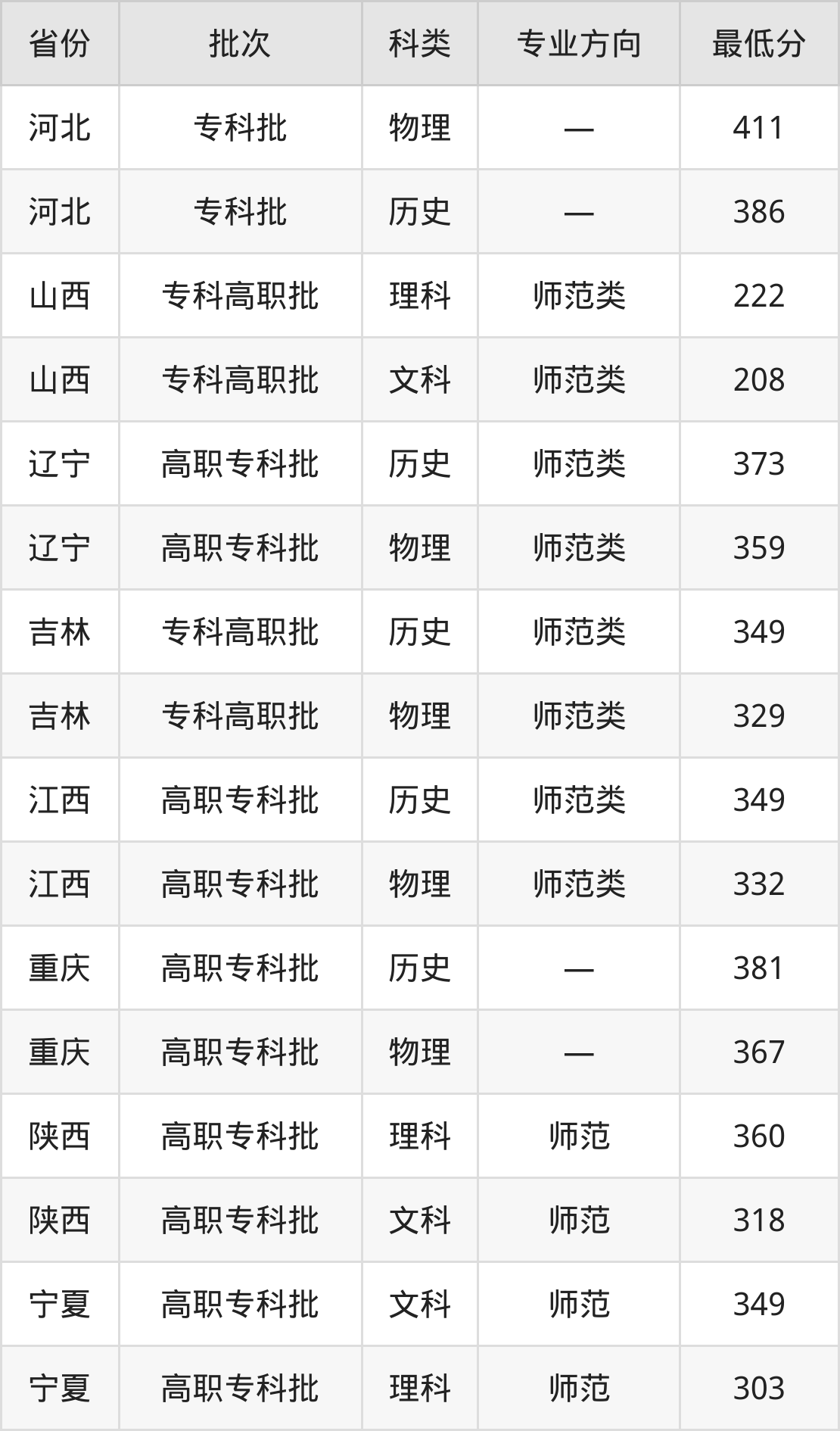齐齐哈尔高等师范专科学校小学道德与法治教育专业录取分数线从208分到411分不等,最低分数线如下: