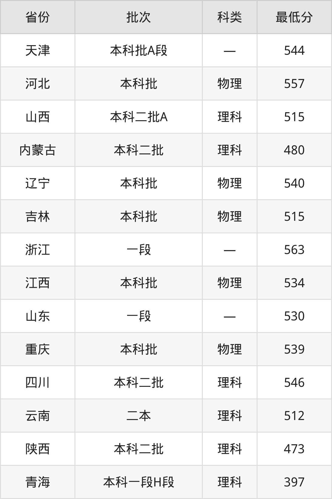 郑州轻工业大学能源与动力工程专业在全国各省最低录取分数线为397分(青海理科),除此之外,在其余地区的最低分为重庆物理类539分、云南理科512分、四川理科546分、天津544分等,以上数据均为2024年数据,供2025年高考生参考。