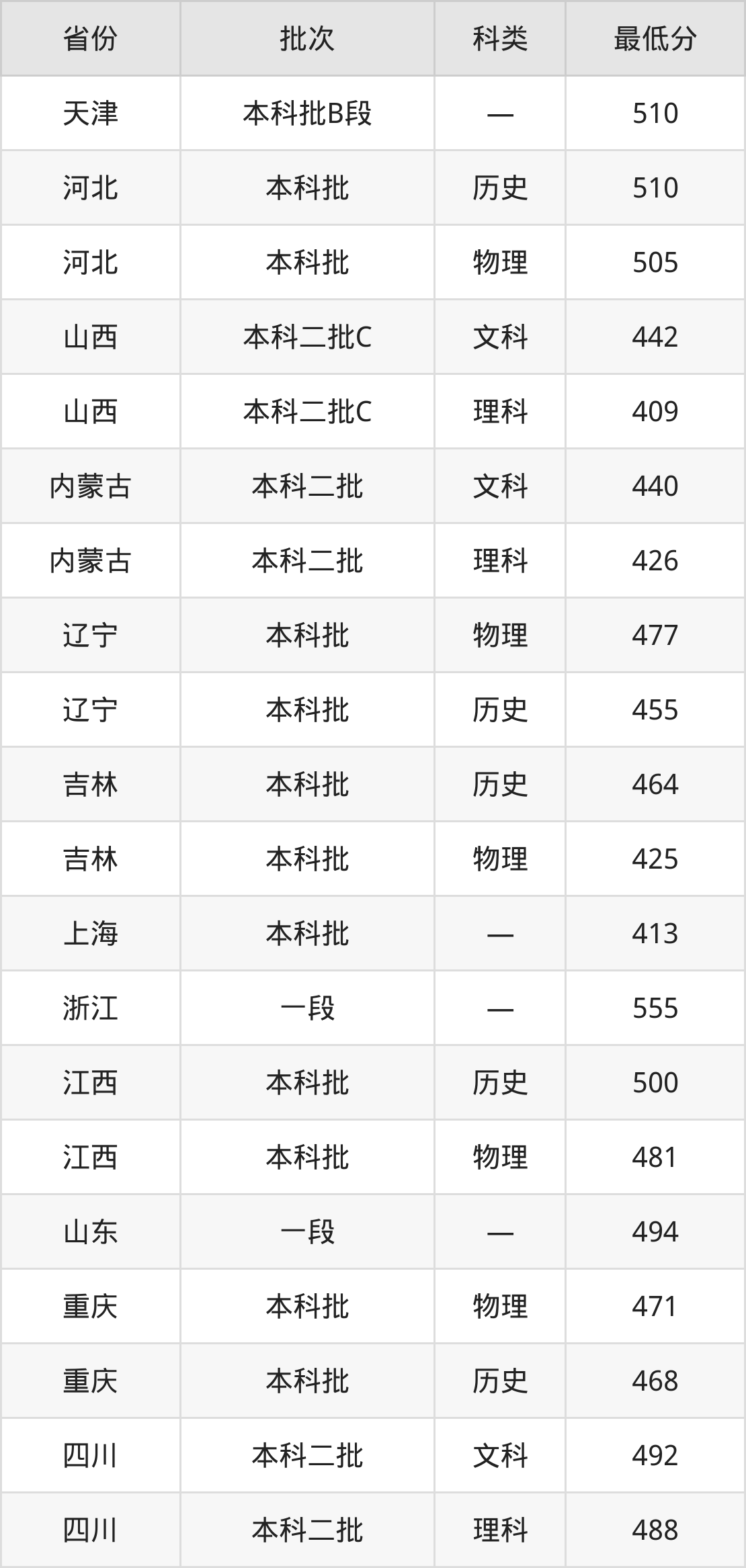 西南财经大学天府学院会计学专业录取分数线从346分到555分不等,在部分地区的最低分数线如下: