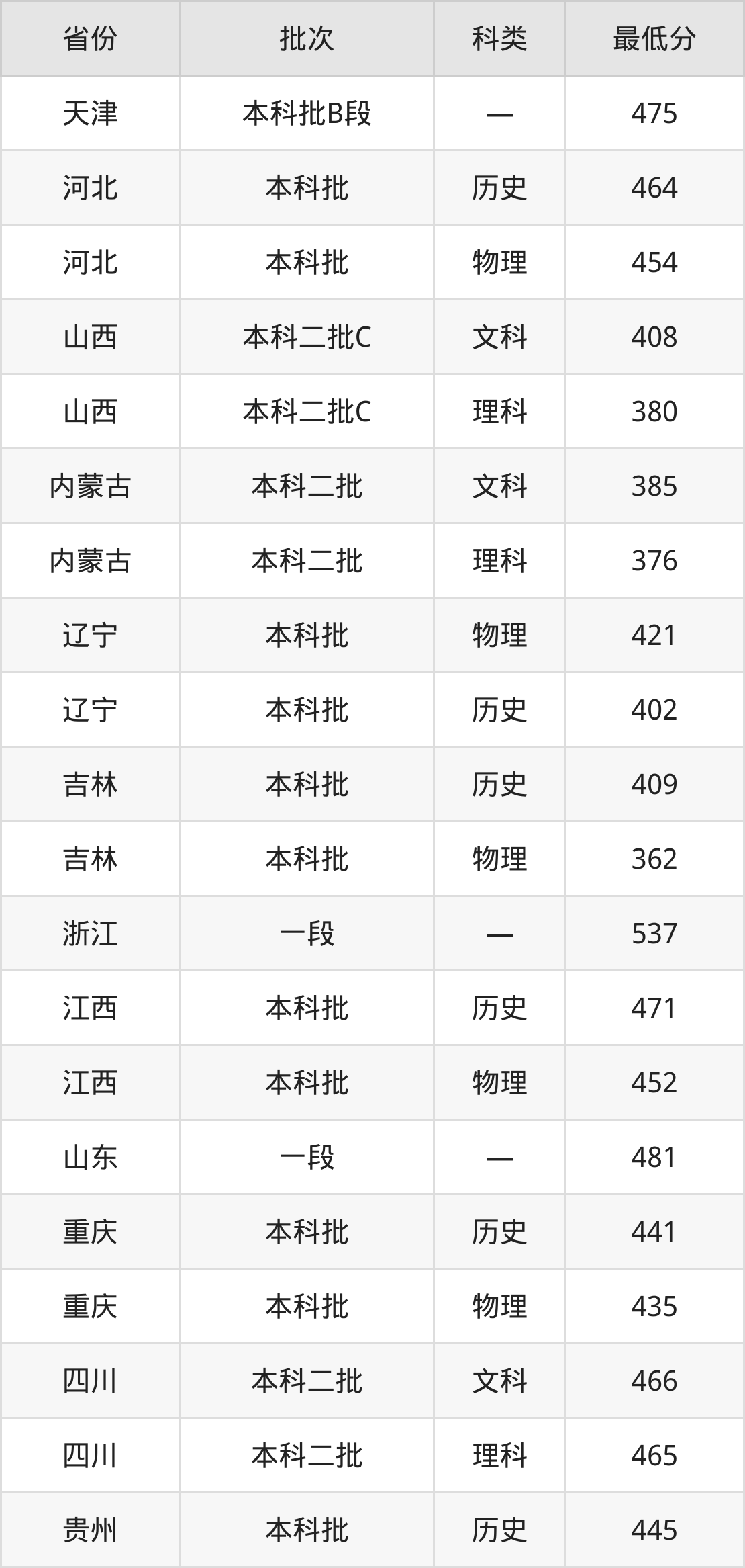 湖南涉外经济学院网络与新媒体专业录取分数线从362分到537分不等,在部分地区的最低分数线如下: