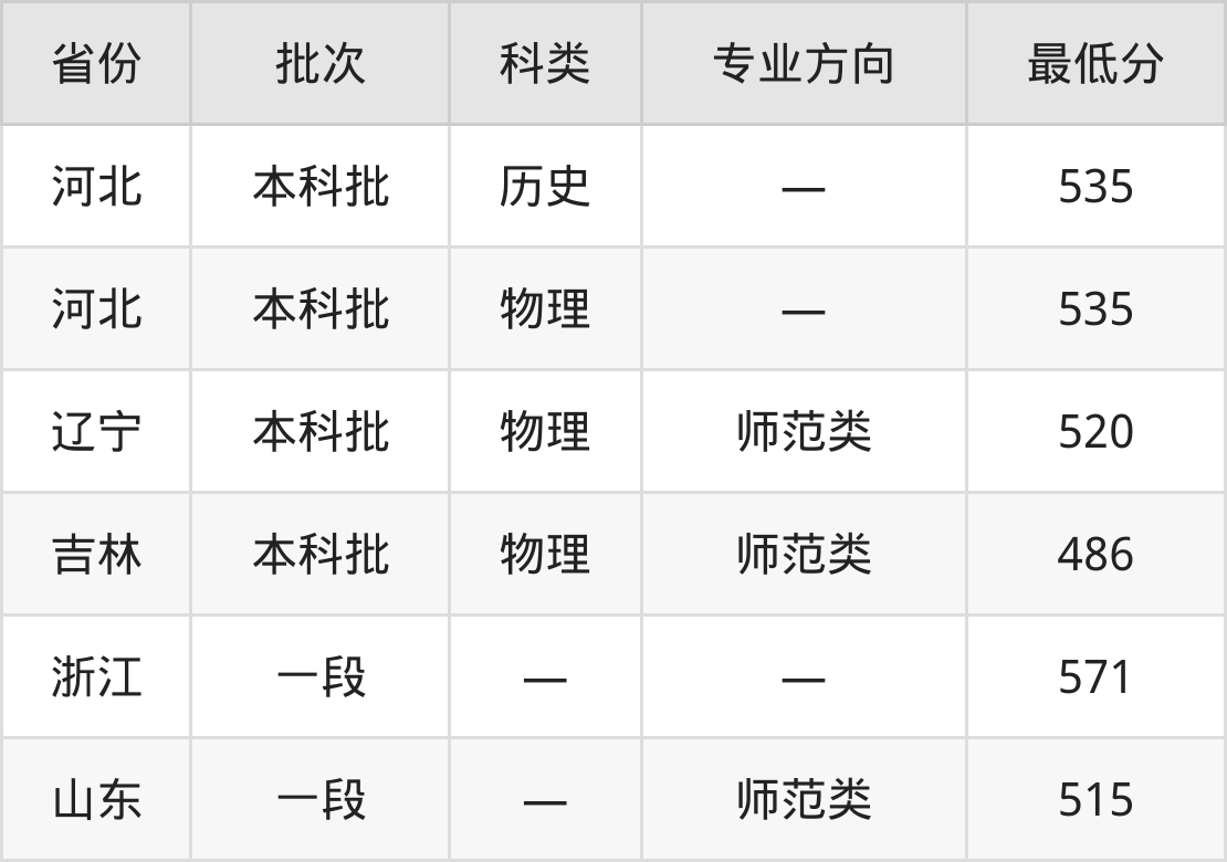 河北科技师范学院英语专业录取分数线从486分到571分不等,最低分数线如下: