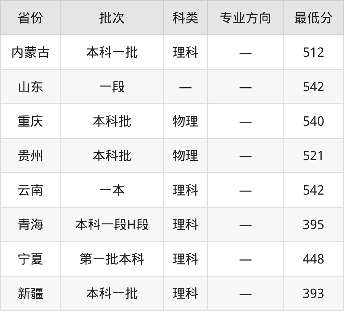 中南民族大学化学类专业在全国各省最低录取分数线为393分(新疆理科),除此之外,在其余地区的最低分为重庆物理类540分、贵州物理类521分、云南理科542分、青海理科395分等,以上数据均为2024年数据,供2025年高考生参考。