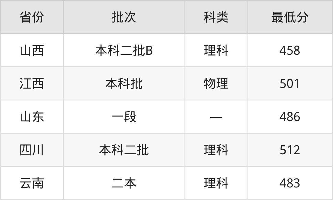 宁德师范学院计算机科学与技术专业在全国各省最低录取分数线为458分(山西理科),除此之外,在其余地区的最低分为四川理科512分、云南理科483分、江西物理类501分、山东486分,以上数据均为2024年数据,供2025年高考生参考。