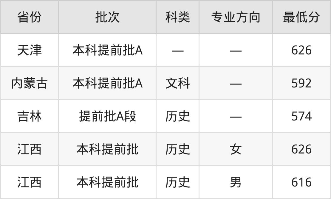 北京电子科技学院行政管理专业在全国各省最低录取分数线为574分(吉林历史类),除此之外,在其余地区的最低分为江西历史类616分、天津626分、内蒙古文科592分,以上数据均为2024年数据,供2025年高考生参考。
