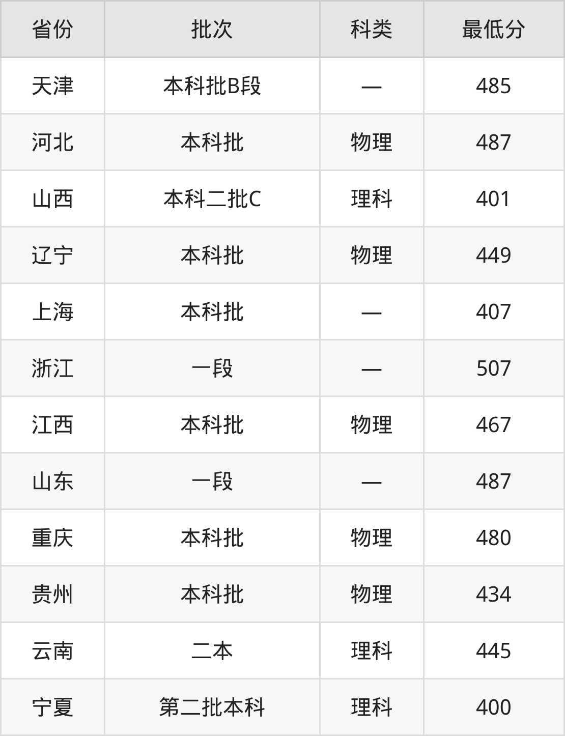 江西财经大学现代经济管理学院工程审计专业在全国各省最低录取分数线为400分(宁夏理科),除此之外,在其余地区的最低分为河北物理类487分、山西理科401分、浙江507分、江西物理类467分等,以上数据均为2024年数据,供2025年高考生参考。