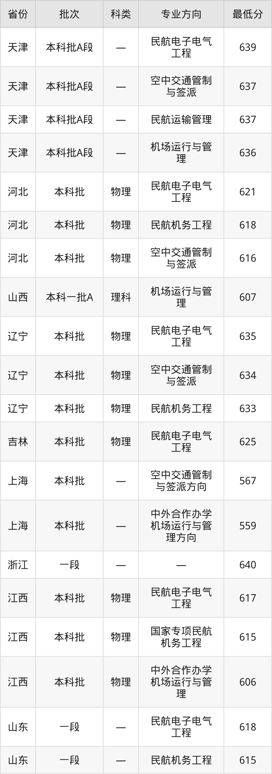 南京航空航天大学交通运输专业录取分数线从527分到653分不等,在部分地区的最低分数线如下: