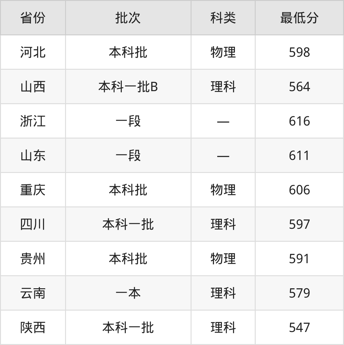 宁波大学临床医学专业在全国各省最低录取分数线为547分(陕西理科),除此之外,在其余地区的最低分为河北物理类598分、浙江616分、四川理科597分、贵州物理类591分等,以上数据均为2024年数据,供2025年高考生参考。