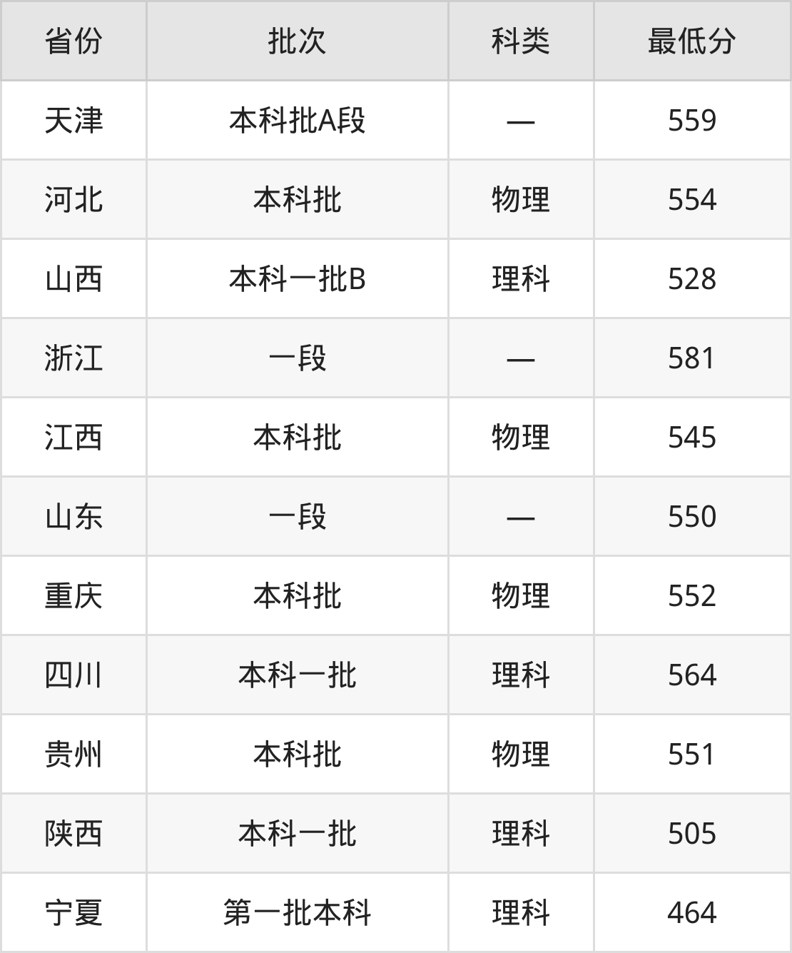 安徽理工大学弹药工程与爆炸技术专业录取分数线从464分到581分不等,在部分地区的最低分数线如下: