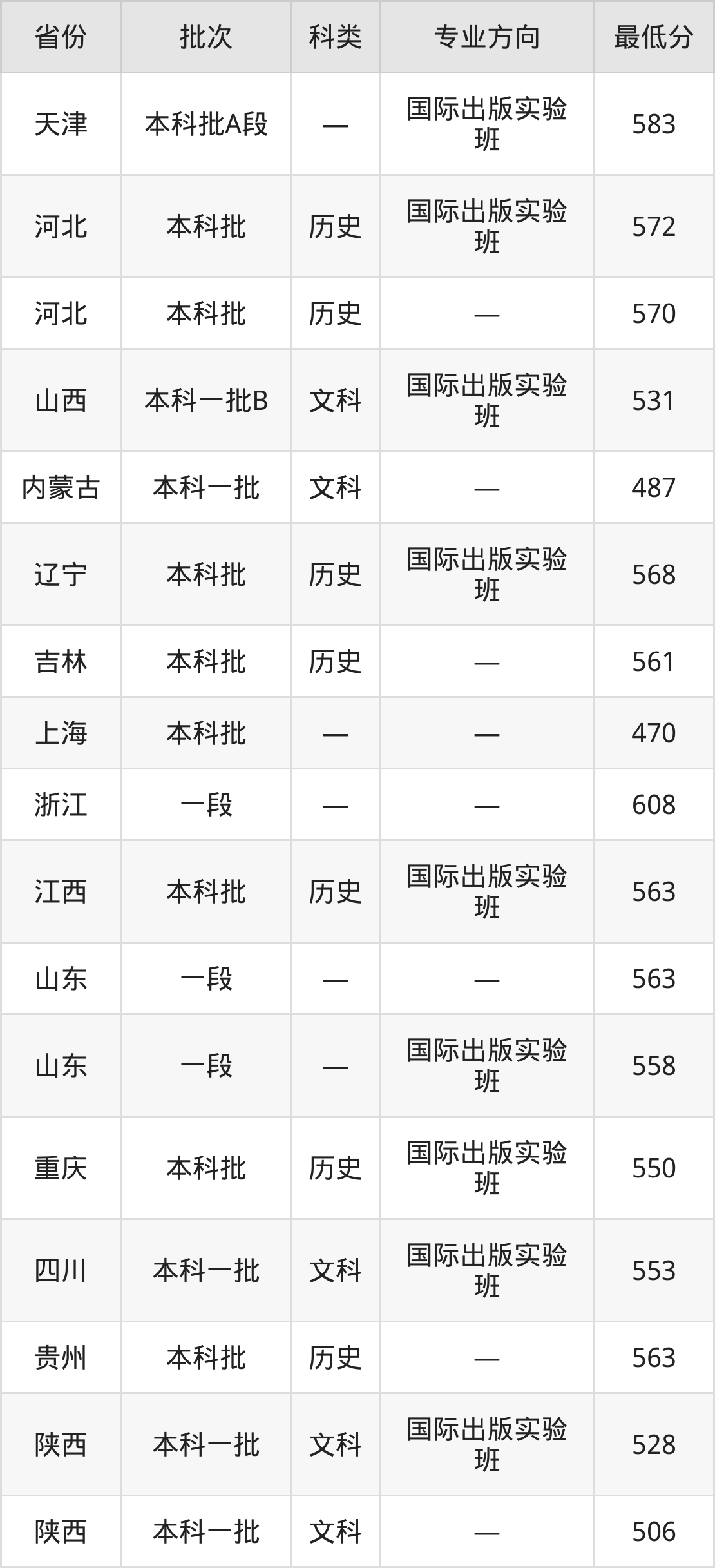 北京印刷学院传播学专业录取分数线从470分到608分不等,在部分地区的最低分数线如下: