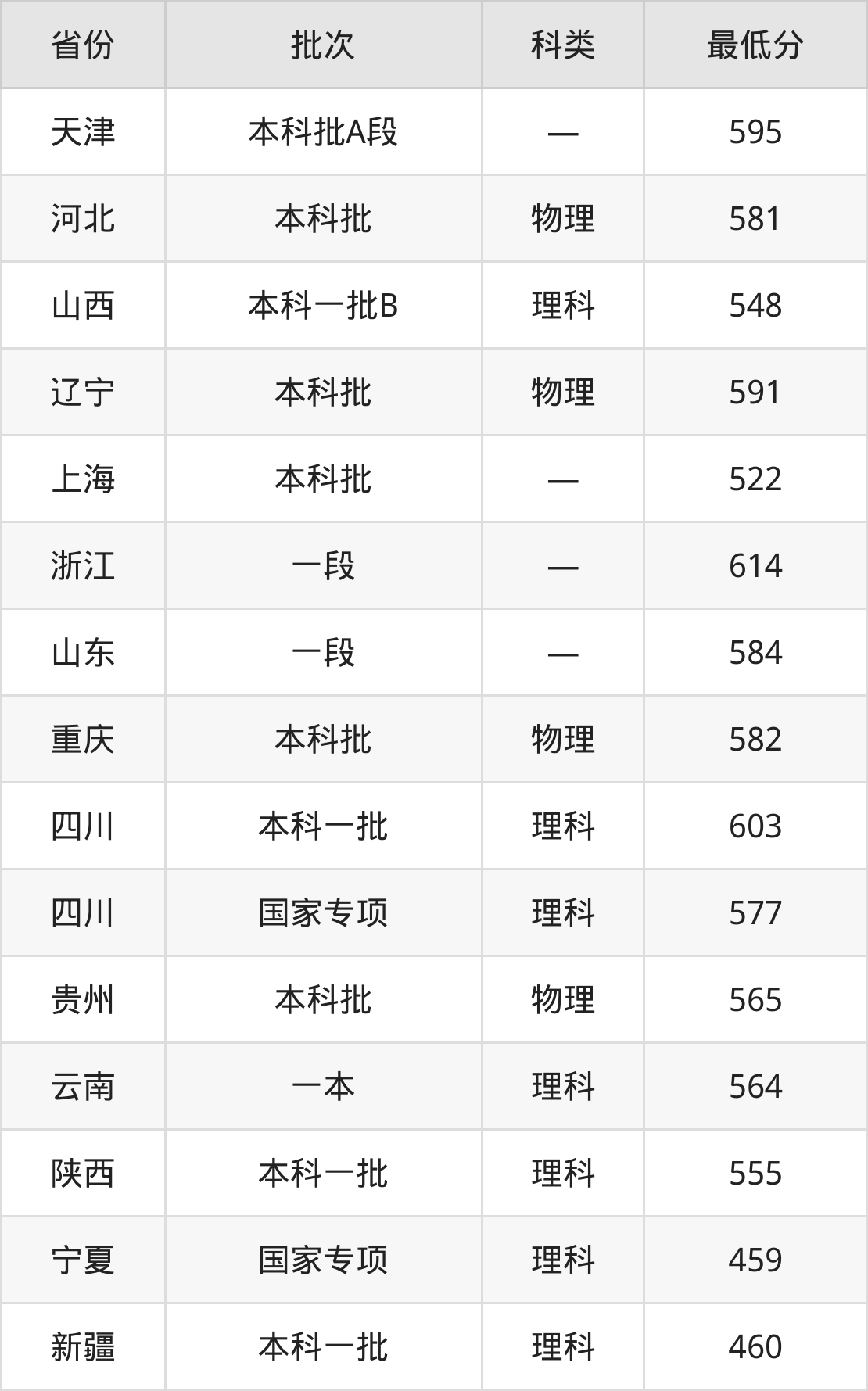 南京工业大学化学工程与工艺专业录取分数线从459分到614分不等,在部分地区的最低分数线如下: