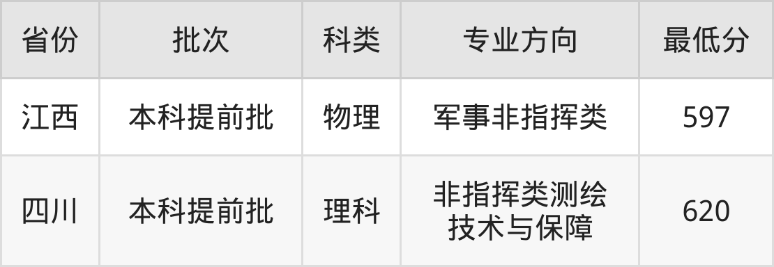 | 物理类 | 军事非指挥类 测绘技术与保 障只招男生 | 2 |