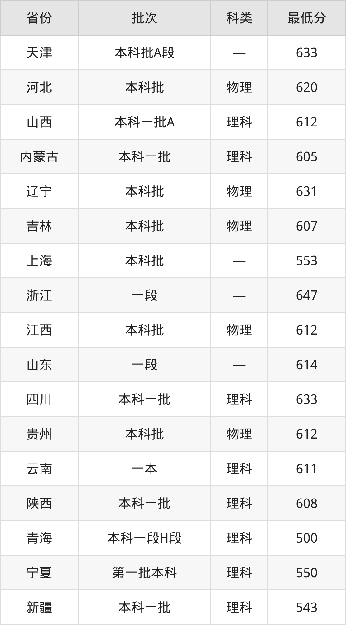 南京邮电大学电子科学与技术专业在全国各省最低录取分数线为500分(青海理科),除此之外,在其余地区的最低分为天津633分、上海553分、山西理科612分、吉林物理类607分等,以上数据均为2024年数据,供2025年高考生参考。