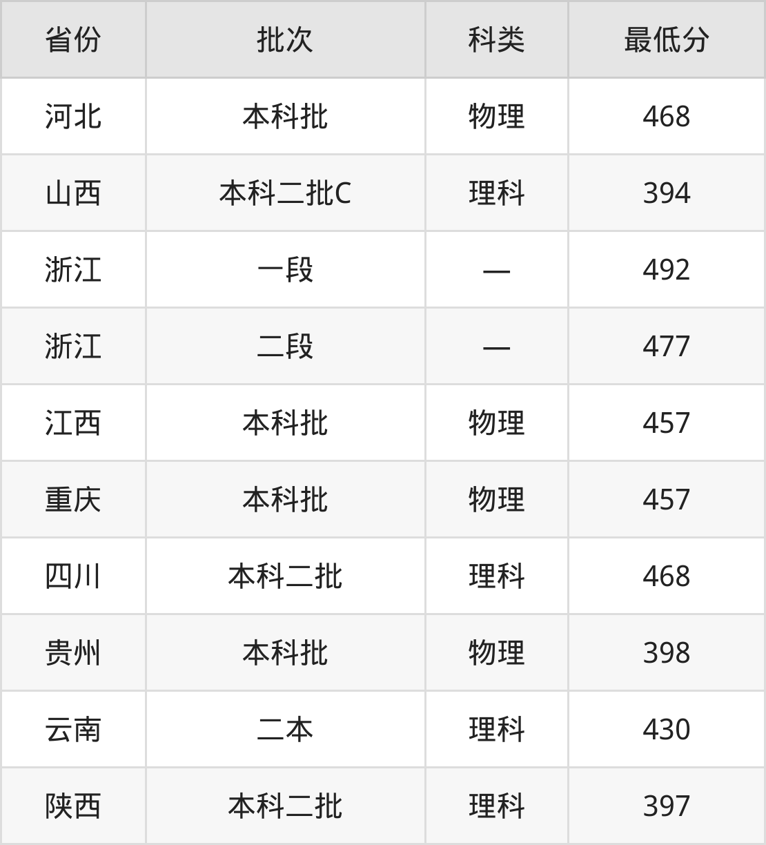 山西:理科最低394分