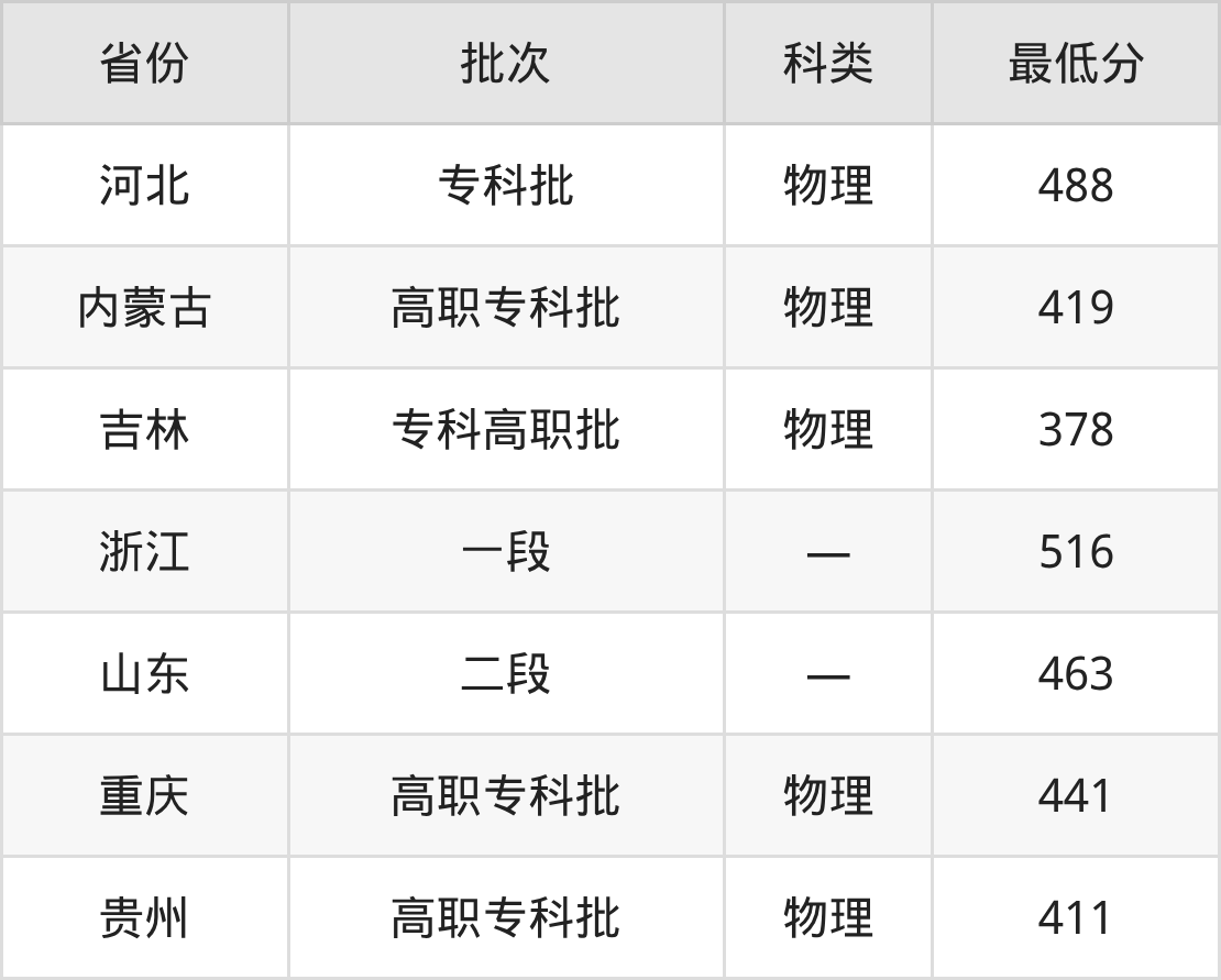 商丘医学高等专科学校口腔医学专业录取分数线从378分到516分不等,最低分数线如下:
